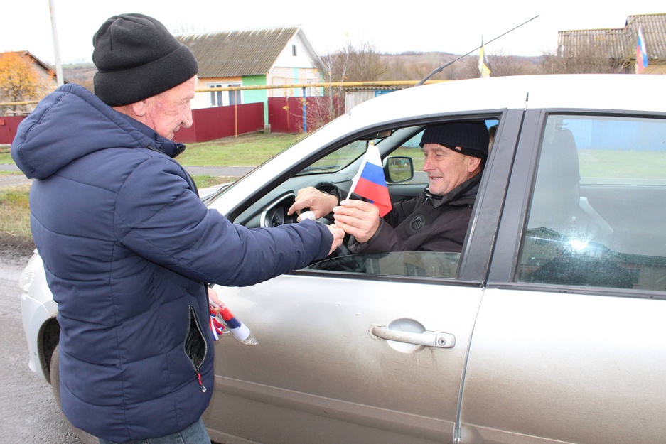 В рамках этой акции всем жителям села были вручены символы нашего государства – флажки Российской Федерации и яркие триколоровские ленточки.