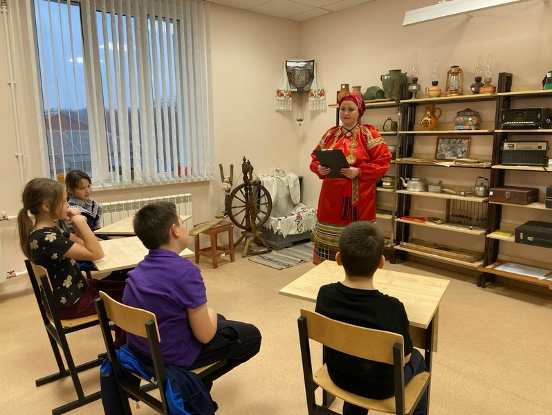 Ведущая познакомила ребят с различными жанрами русского фольклора, прочитала пословицы, скороговорки. Присутствующие отгадывали загадки, читали потешки, считалки.